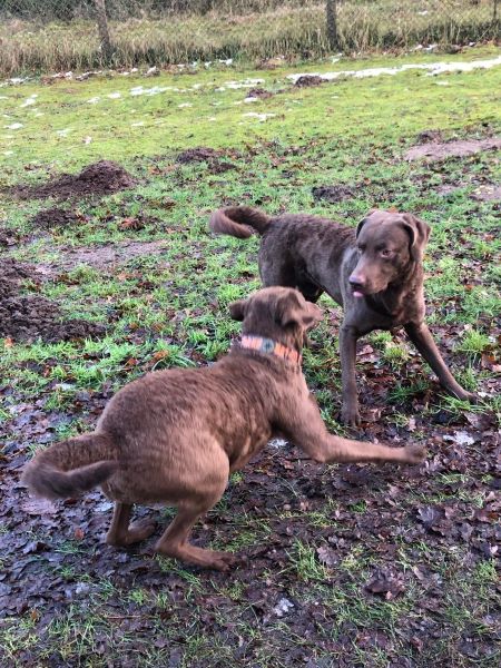 Keke hat bei diesem Treffen einen tollen Eindruck bei mir hinterlassen, ich hatte ihn ja bereits schon im Frühjahr bei unserem Kenneltreffen kennen gelernt, da war er aber noch sehr jung, jetzt im Januar zeigte er sich als ein kräftiger freundlicher Chessierüde, der sich einfach toll weiter entwickelt hat und zu recht mit "vorzüglich" im Formwert ausgezeichnet wurde. Er steht ebenso wie Jale genau in der Mitte des zugelassenem Größenstandards.